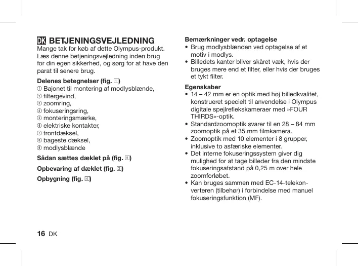 BRUGSANVISNING ZUIKO DIGITAL ED 14 OLYMPUS