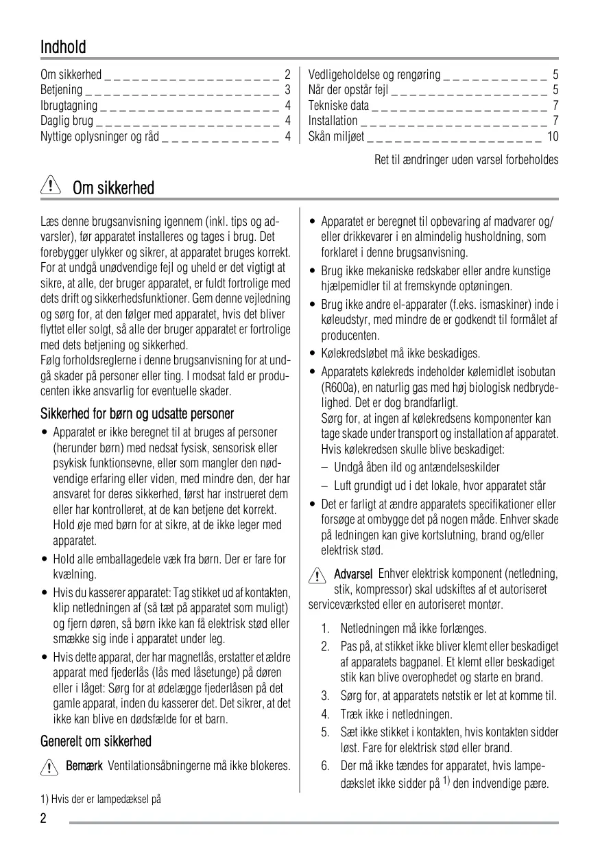 Téléchargez la notice de votre Køleskab au format PDF gratuitement ! Retrouvez votre notice ZBA7230A - ZANUSSI et reprennez votre appareil électronique en main. Sur cette page sont publiés tous les documents nécessaires à l'utilisation de votre appareil ZBA7230A de la marque ZANUSSI.