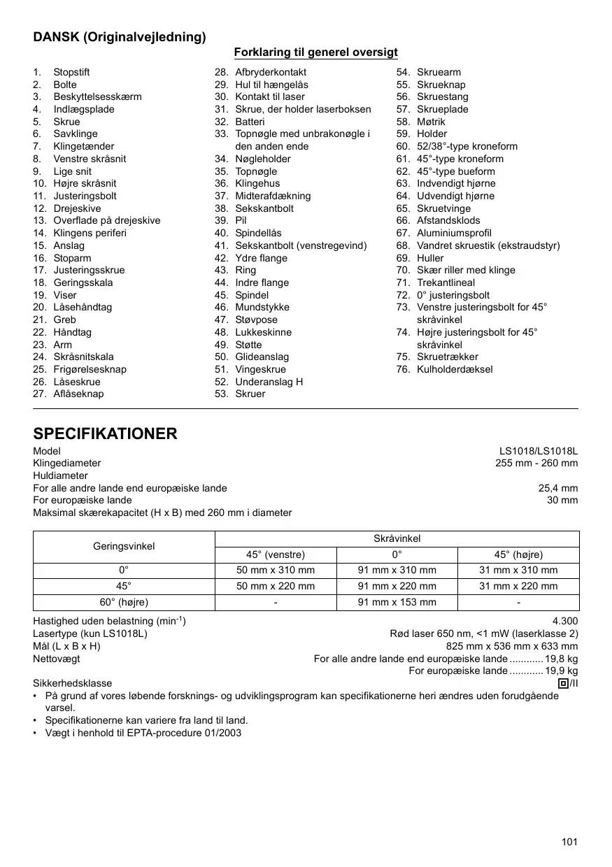 BRUGSANVISNING LS1018 MAKITA