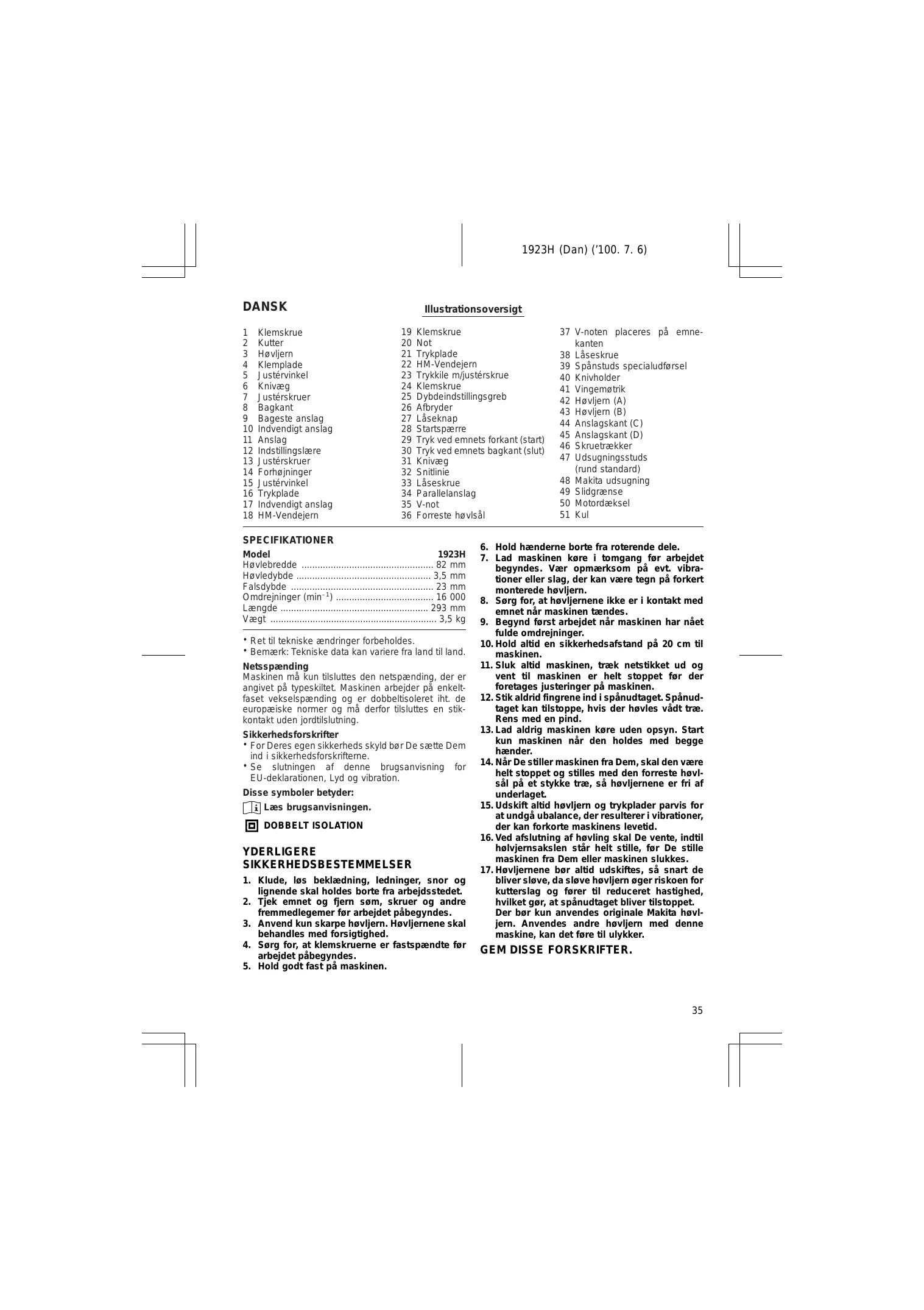 BRUGSANVISNING 1923H MAKITA
