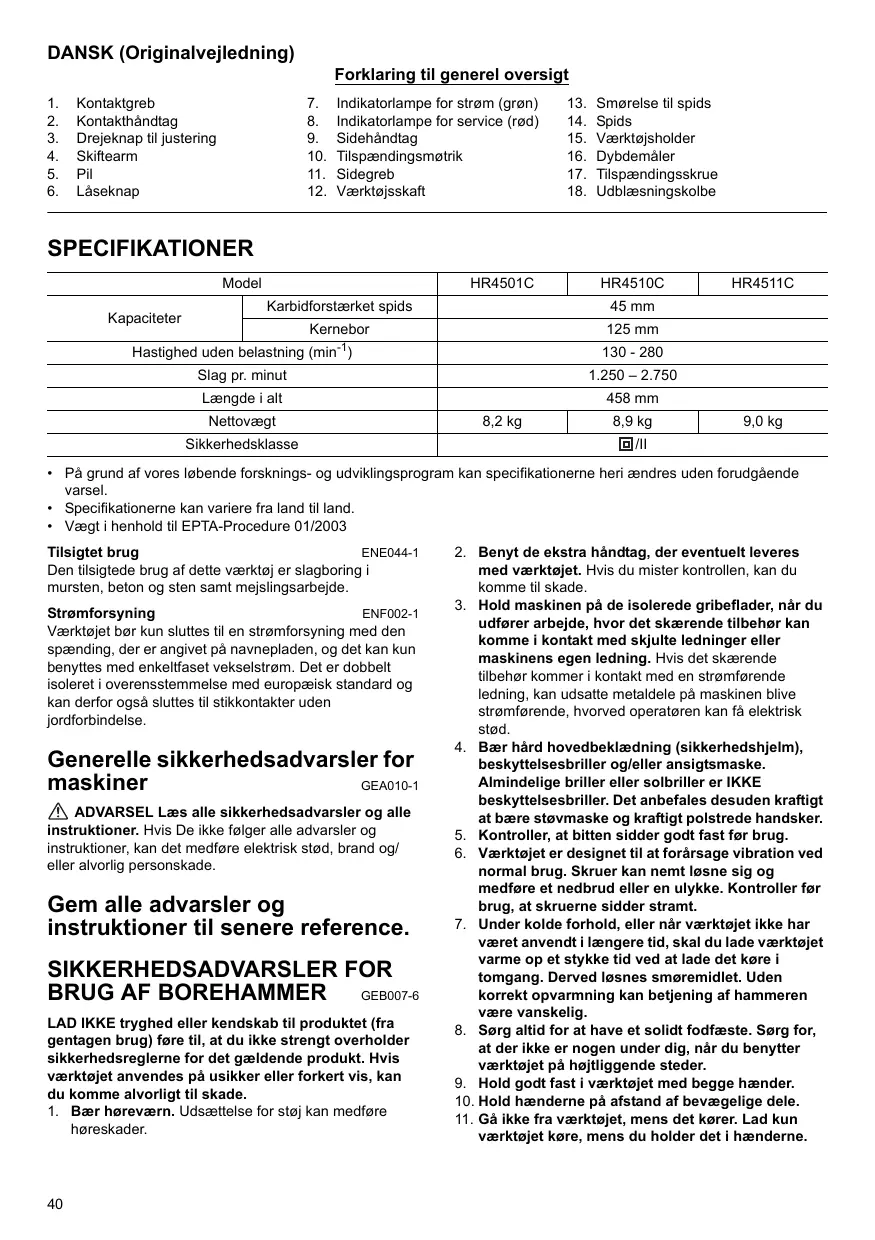 BRUGSANVISNING HR 4501 C MAKITA