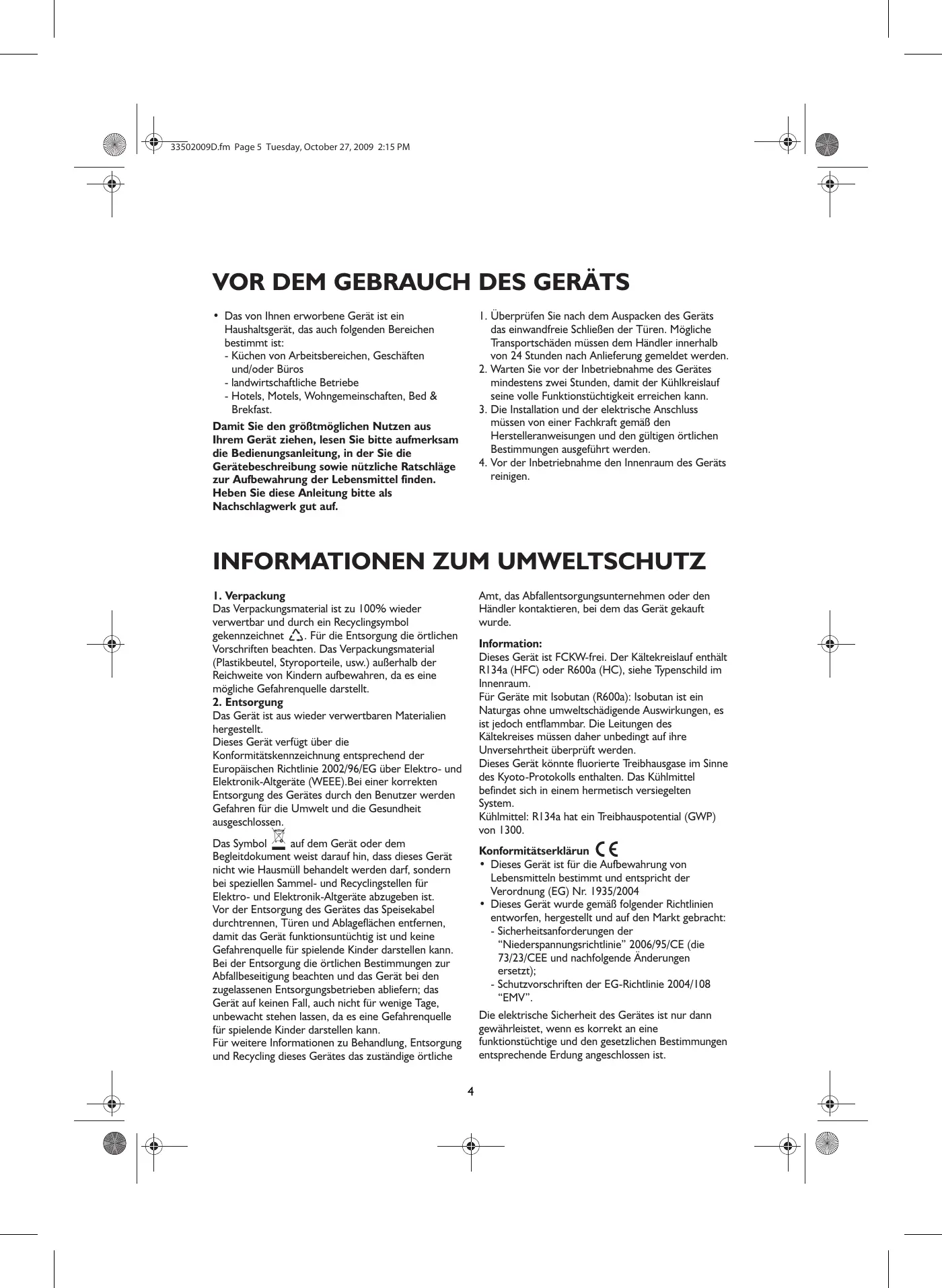 - Dieses Gerät ist für die Aufbewahrung von Lebensmitteln bestimmt und entspricht der Verordnung (EG) Nr. 1935/2004