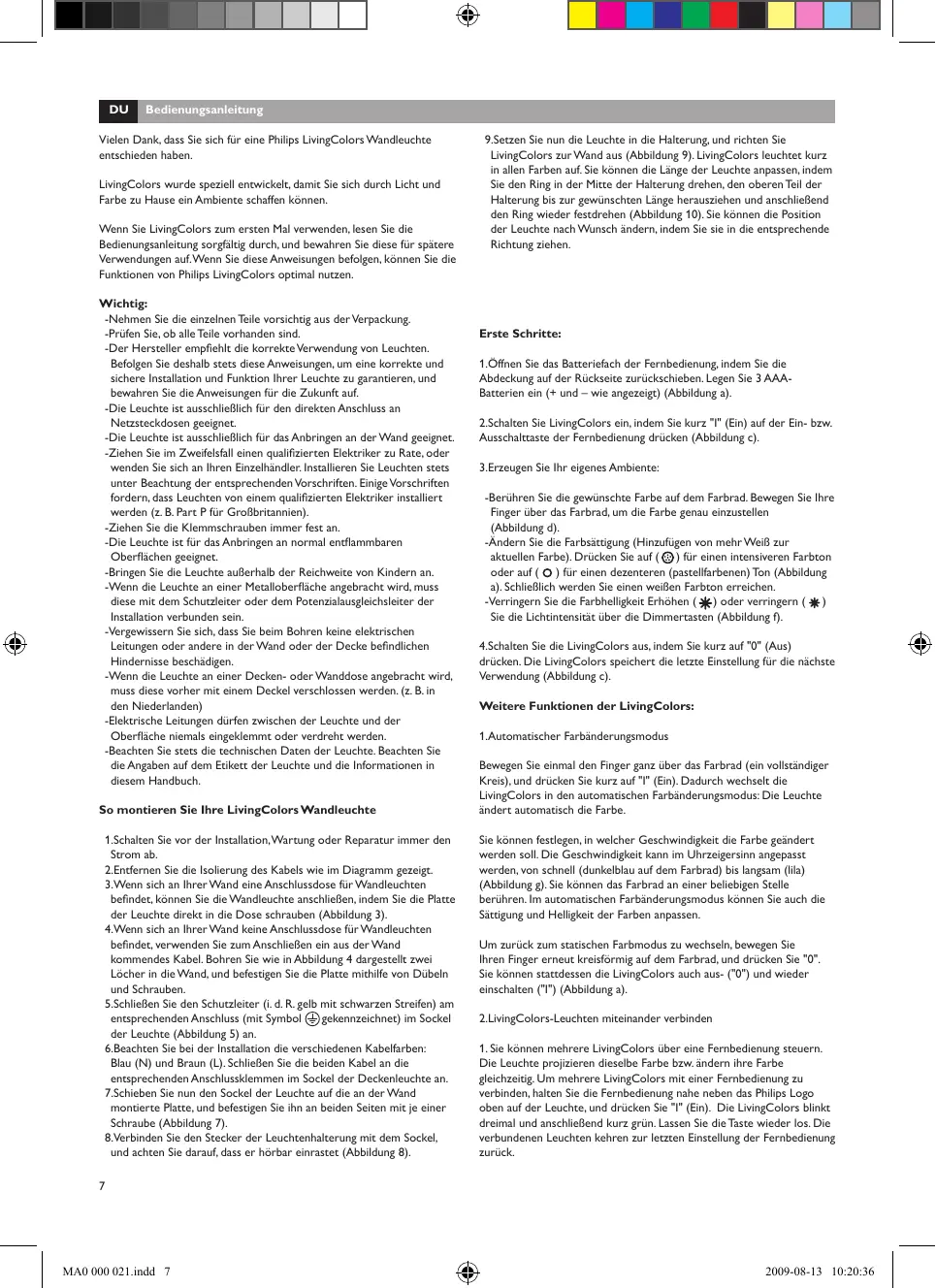 Vielen Dank, dass Sie sich für eine Philips LivingColors Wandleuchte entschieden haben.