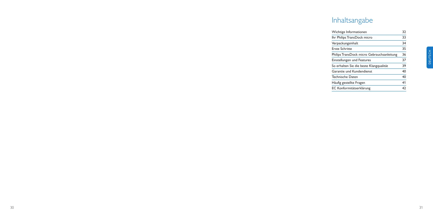 Wichtige Informationen Ihr Philips TransDock micro Verpackungsinhalt Erste Schritte