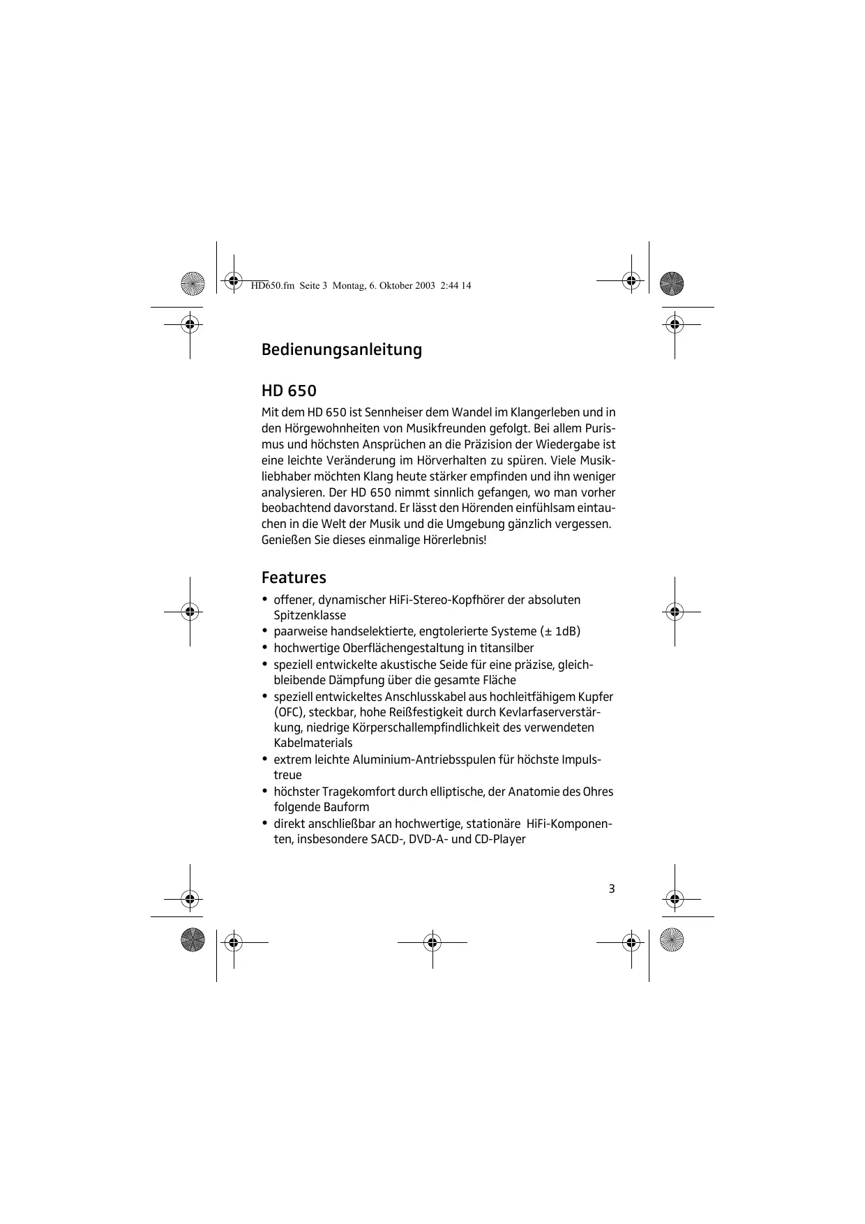 BEDIENUNGSANLEITUNG HD 650 SENNHEISER