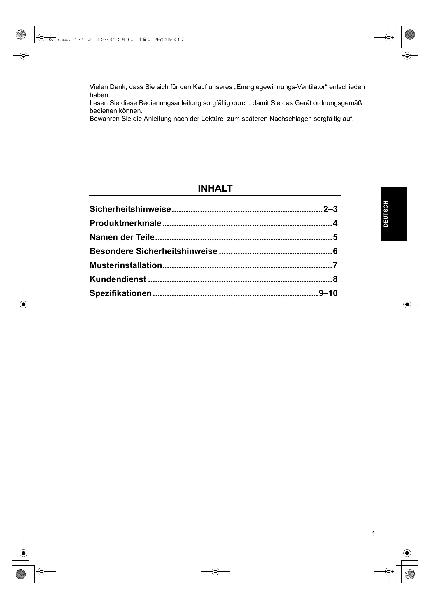 Vielen Dank, dass Sie sich für den Kauf unseres „Energiegewinnungs-Ventilator“ entschieden haben.