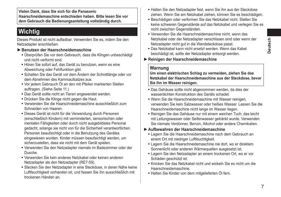 - Verwenden Sie die Haarschneidemaschine ausschließlich zum Schneiden von Haaren.