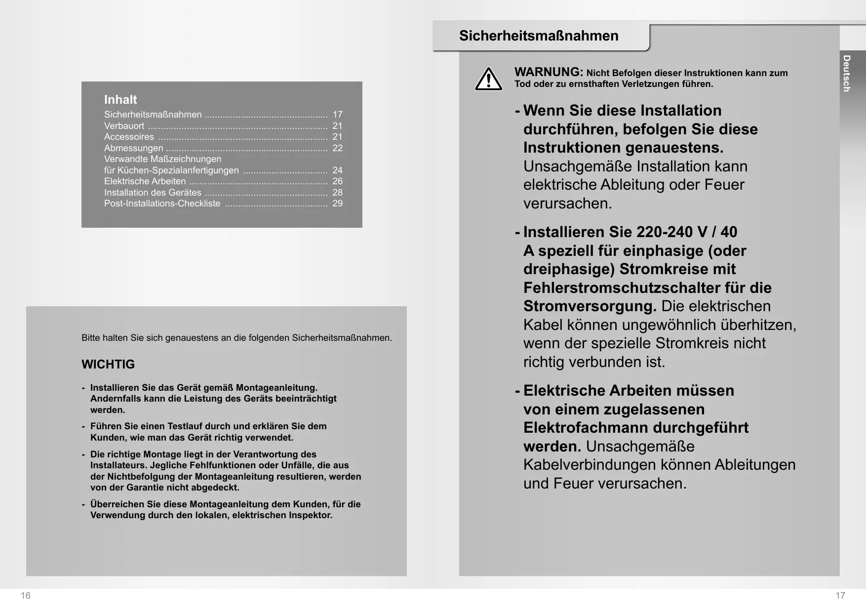 - Elektrische Arbeiten müssen von einem zugelassenen