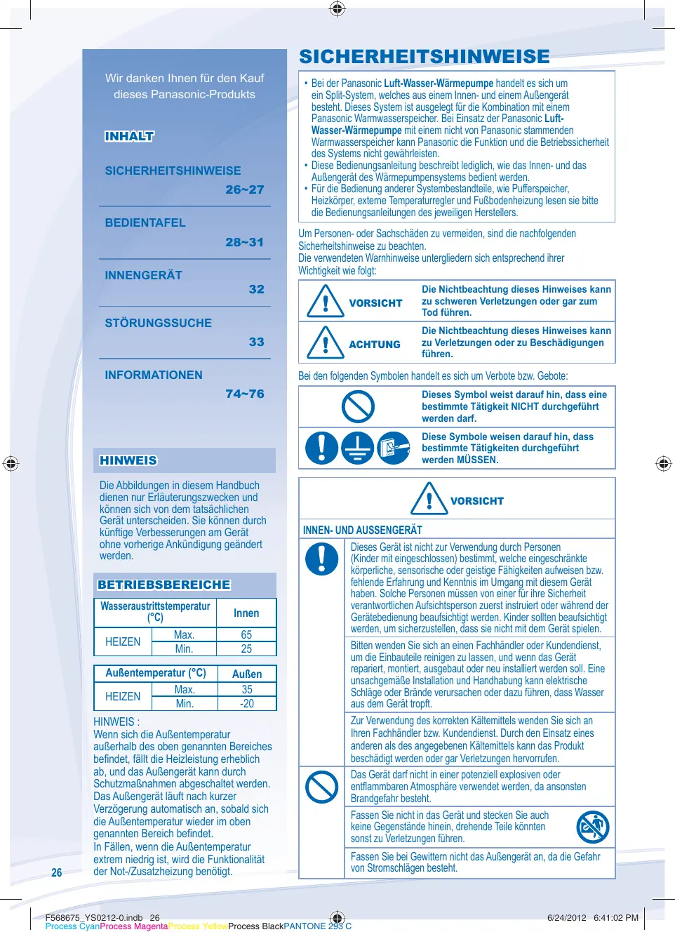 6/24/2012 6:41:02 PM SICHERHEITSHINWEISE Wir danken Ihnen für den Kauf dieses Panasonic-Produkts INHALT SICHERHEITSHINWEISE 26~27 BEDIENTAFEL 28~31 INNENGERÄT