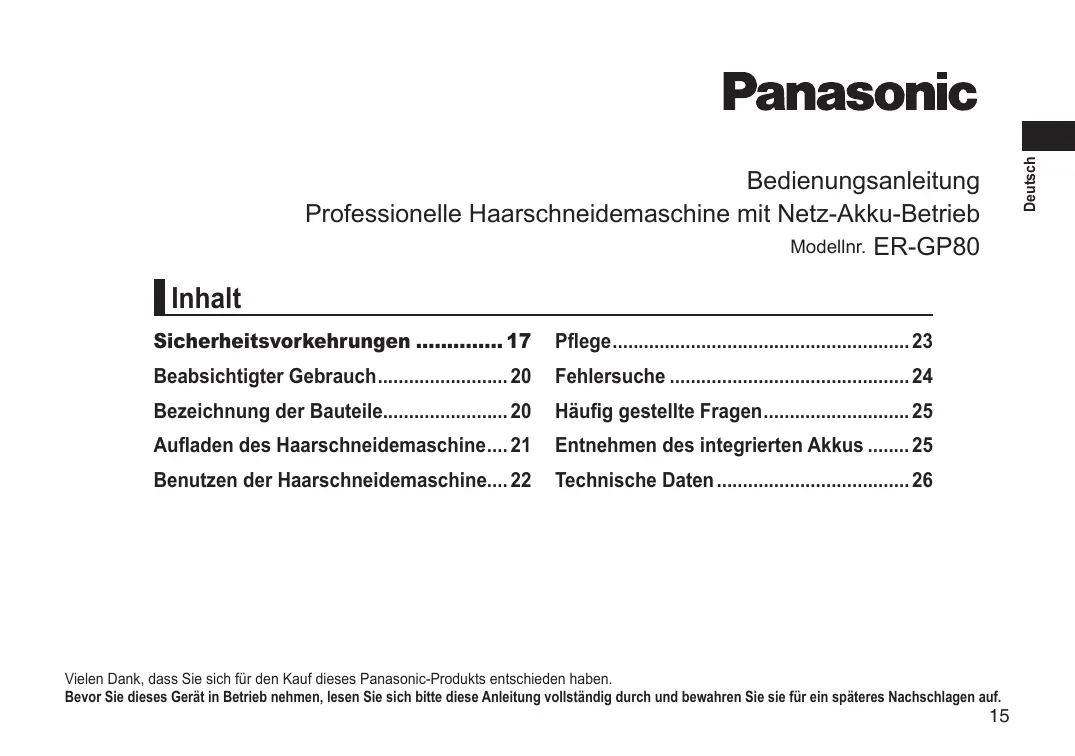 Finden Sie kostenlos die Bedienungsanleitung des Geräts ER-GP80 PANASONIC als PDF.