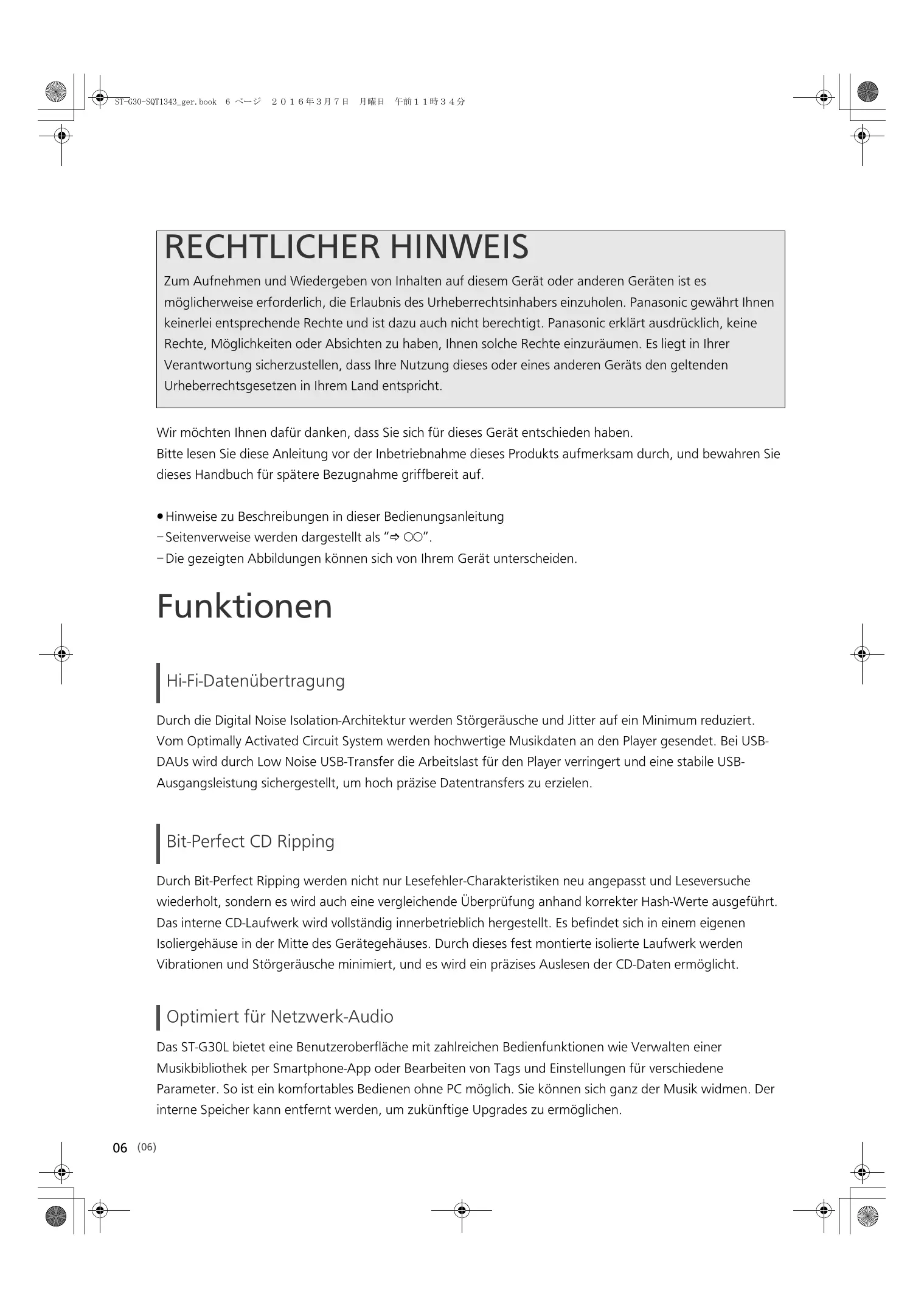 Hauptgerät (Vorder-/Rückseite) Verbindung mit dem Musik-Server, Geräte/Netzkabel usw. Vor Inbetriebnahme dieses Geräts, Musikimport von CDs oder USB-Geräten Wiedergabe von Musik, die auf der SSD dieses Geräts gespeichert ist Musikimport von einem PC, Sichern / Wiederherstellen Lesen Sie den Abschnitt zur Problembehebung, bevor Sie sich an den Kundendienst wenden. Technische Daten, Abspielbare Medien , usw.