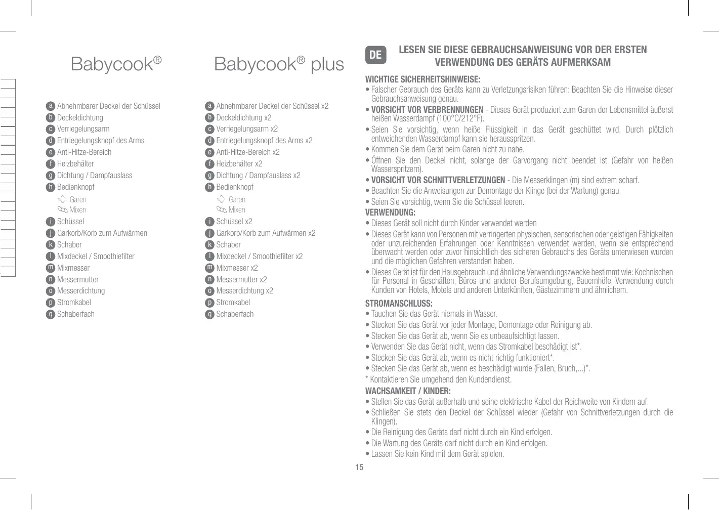 Wir danken Ihnen und gratulieren Ihnen zu Ihrer Wahl: Sie haben ein Gerät mit einzigartiger Leistung erworben. Der BABYCOOK® wurde speziell zur gesunden, einfachen und schnellen Zubereitung von Babymahlzeiten entwickelt. Der BABYCOOK® verwendet Dampf, um Lebensmittel zu garen, aufzuwärmen und aufzutauen. Dabei bewahrt er die Vitamine und mixt perfekt.