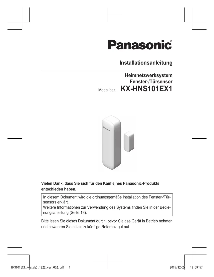 Laden Sie die Anleitung für Ihr Tür-/Fenstersensor kostenlos im PDF-Format! Finden Sie Ihr Handbuch KX-HNS101EX1 - PANASONIC und nehmen Sie Ihr elektronisches Gerät wieder in die Hand. Auf dieser Seite sind alle Dokumente veröffentlicht, die für die Verwendung Ihres Geräts notwendig sind. KX-HNS101EX1 von der Marke PANASONIC.