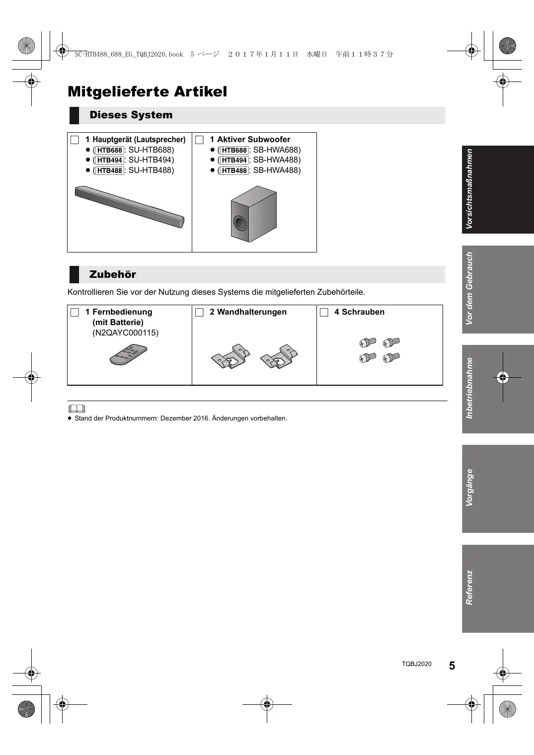 Laden Sie die Anleitung für Ihr Soundbar kostenlos im PDF-Format! Finden Sie Ihr Handbuch SC-HTB488EG - PANASONIC und nehmen Sie Ihr elektronisches Gerät wieder in die Hand. Auf dieser Seite sind alle Dokumente veröffentlicht, die für die Verwendung Ihres Geräts notwendig sind. SC-HTB488EG von der Marke PANASONIC.