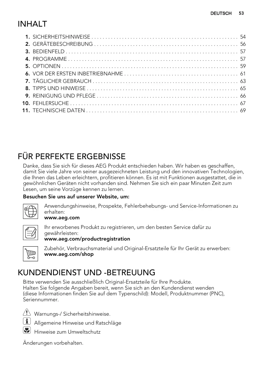 BEDIENUNGSANLEITUNG F88060VI0P AEG