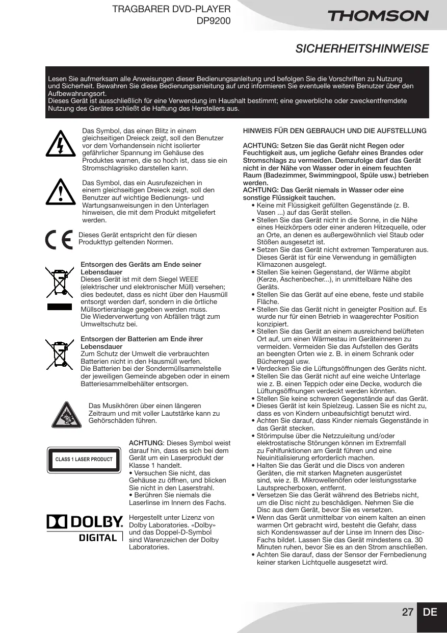 Laden Sie die Anleitung für Ihr kostenlos im PDF-Format! Finden Sie Ihr Handbuch DP9200 - THOMSON und nehmen Sie Ihr elektronisches Gerät wieder in die Hand. Auf dieser Seite sind alle Dokumente veröffentlicht, die für die Verwendung Ihres Geräts notwendig sind. DP9200 von der Marke THOMSON.