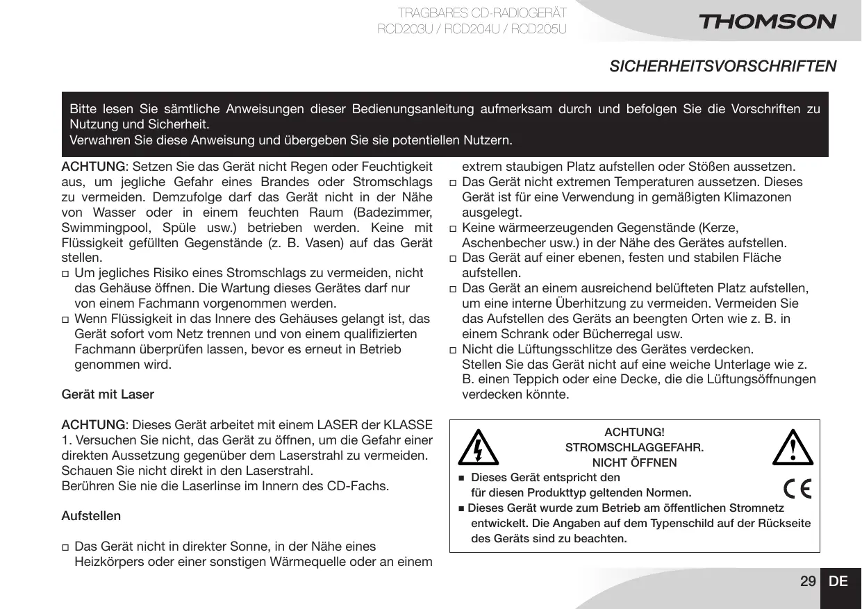 RCD203U - Radio CD THOMSON - Kostenlose Bedienungsanleitung