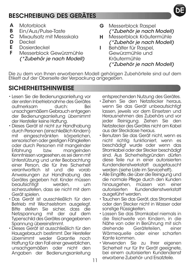 • Avant la première utilisation, nettoyer tous les accessoires (C),(D), (E),