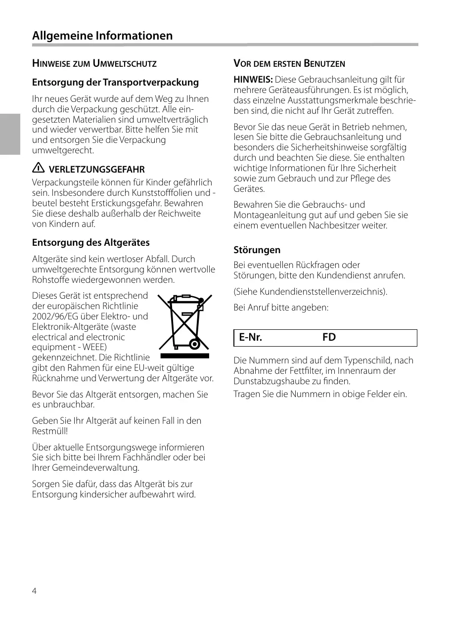 Störungen Bei eventuellen Rückfragen oder Störungen, bitte den Kundendienst anrufen. (Siehe Kundendienststellenverzeichnis). Bei Anruf bitte angeben: