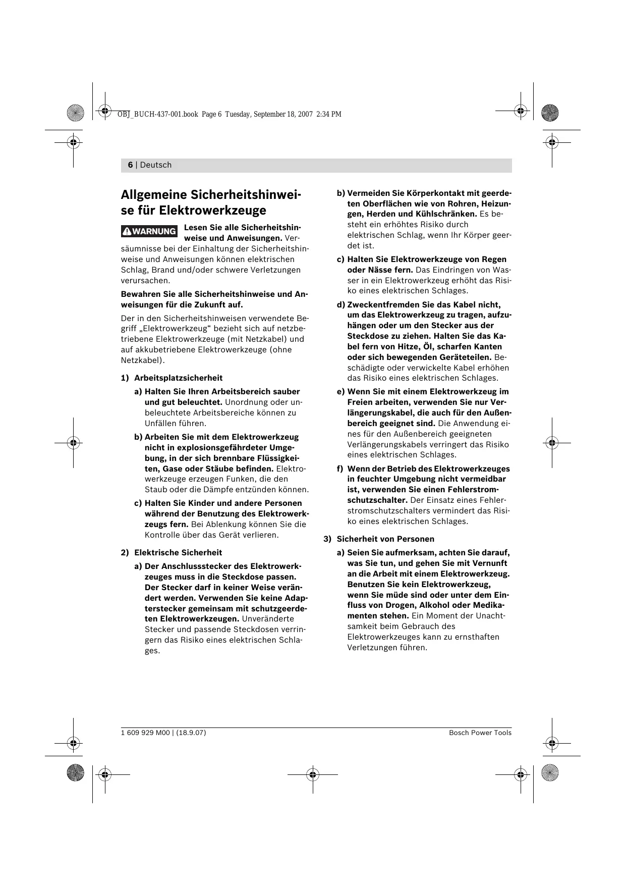 Allgemeine Sicherheitshinweise für Elektrowerkzeuge
