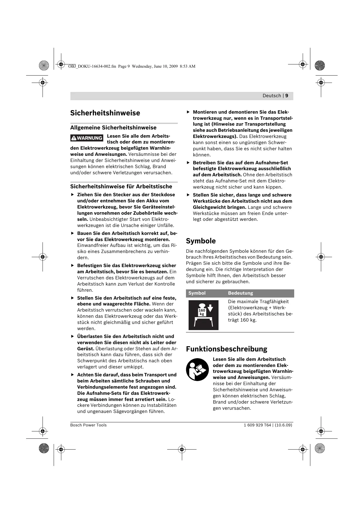 Les symboles suivants peuvent être importants pour l’utilisation de votre table de travail. Veuillez mémoriser ces symboles et leurs significations. L’interprétation correcte des symboles vous permettra de mieux utiliser votre table de travail et en toute sécurité. Symbole