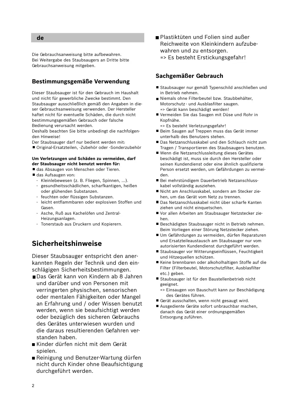 Die Gebrauchsanweisungitte aufbewahren. Bei Weitergabe des Staubsaugers an Dritteitte Gebrauchsanweisung mitgeben.