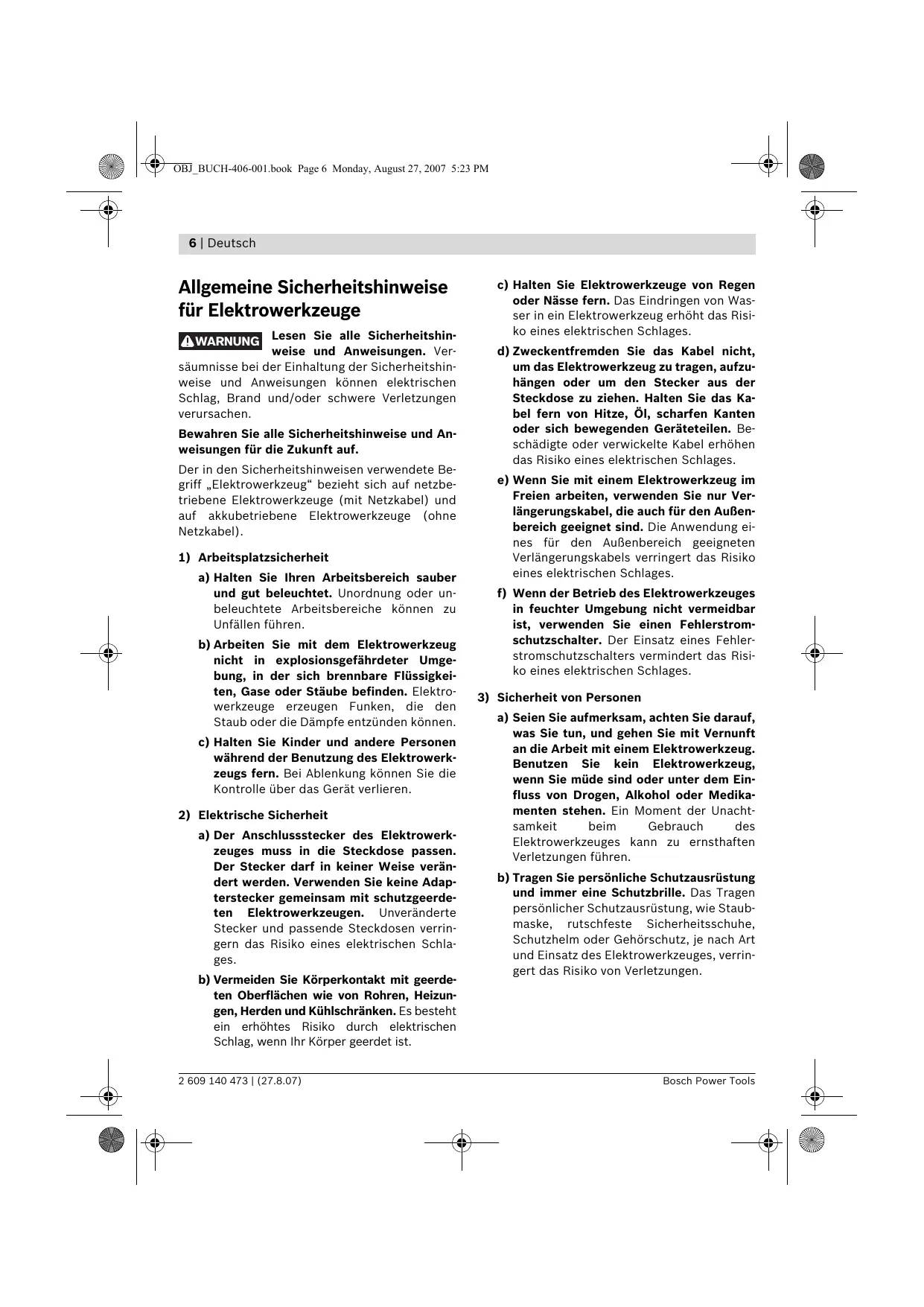 Verwendung und Behandlung des Elektrowerkzeuges
