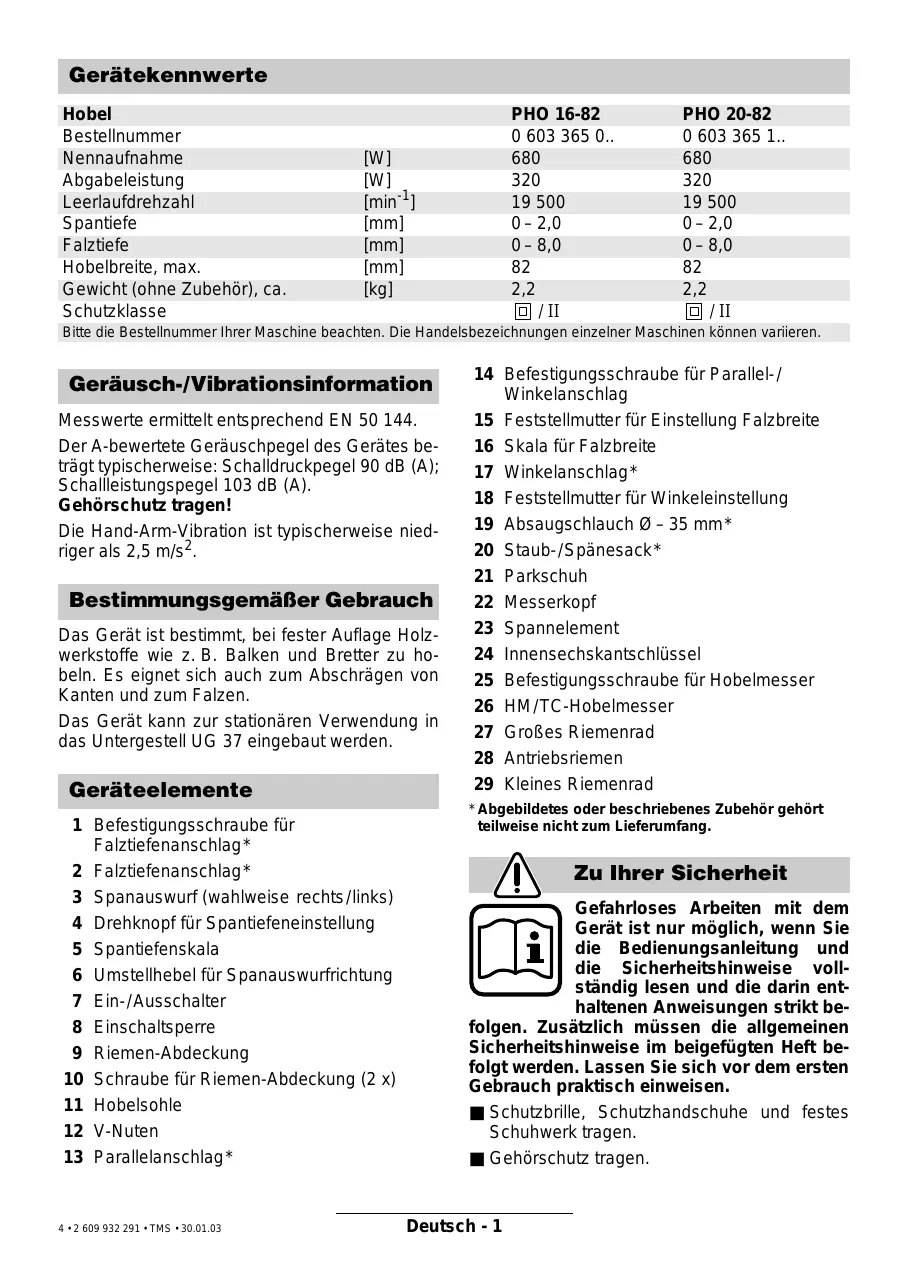 PHO20-82, PHO 20-82 - Hobelmaschine BOSCH - Kostenlose Bedienungsanleitung