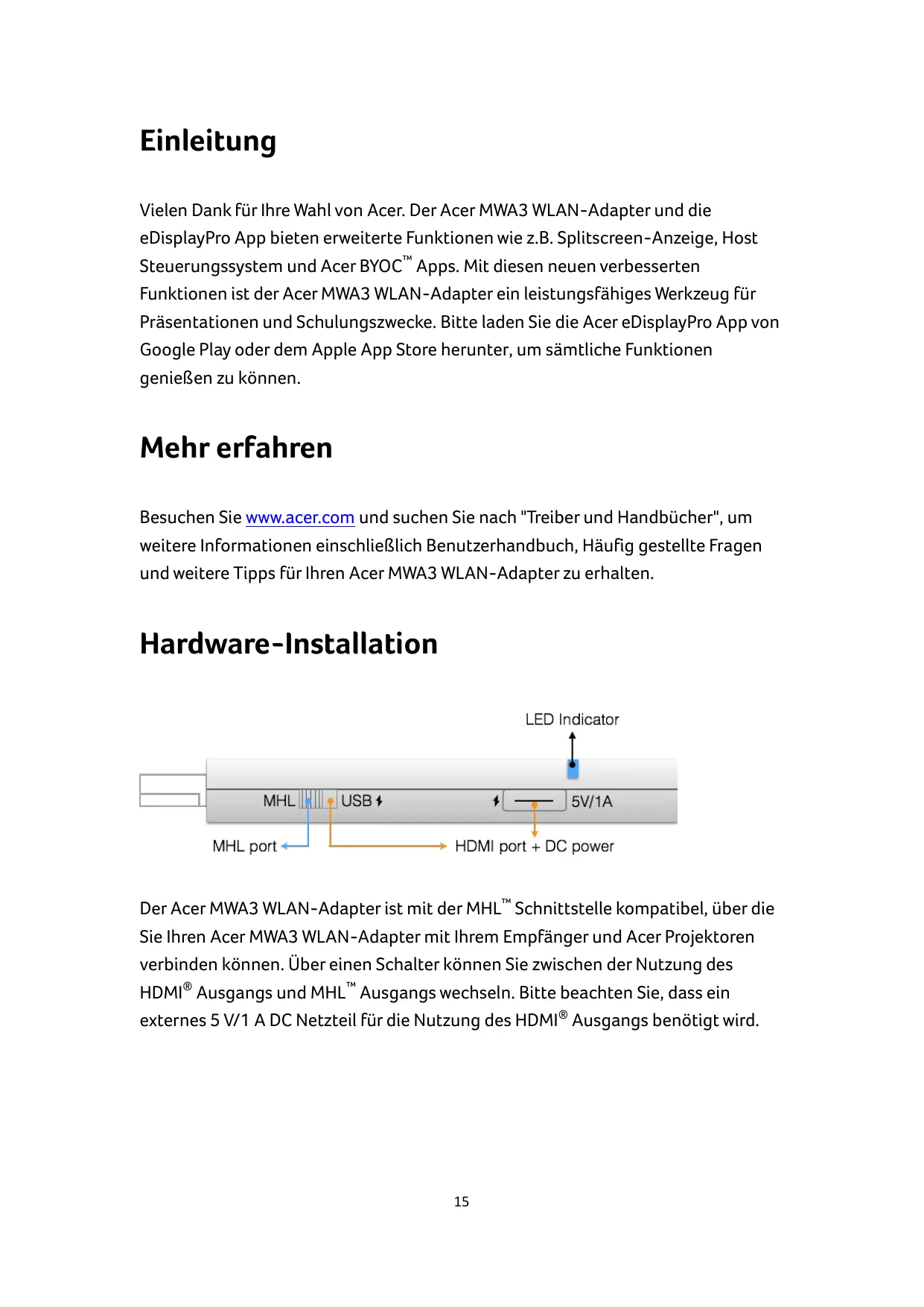 Finden Sie kostenlos die Bedienungsanleitung des Geräts MWA3 ACER als PDF.