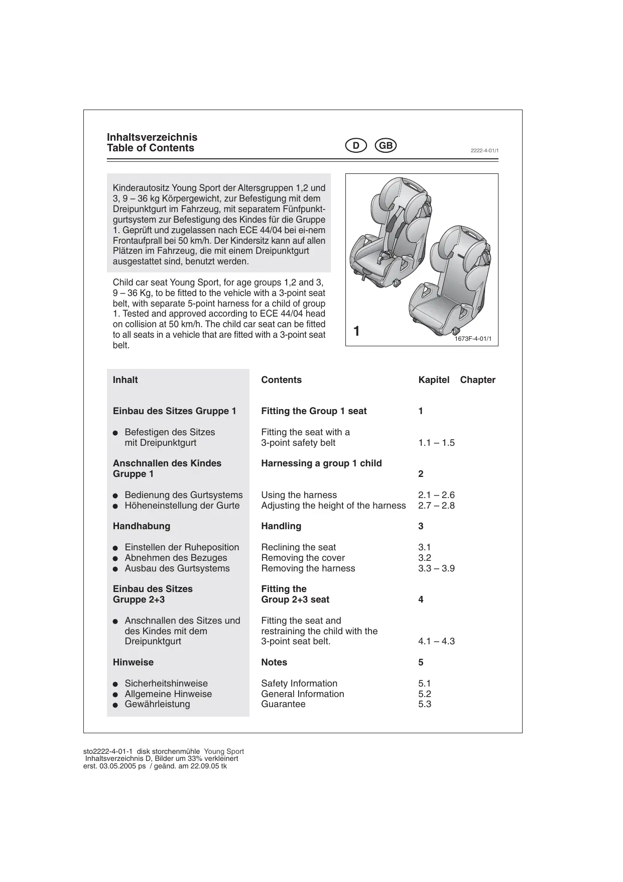 Finden Sie kostenlos die Bedienungsanleitung des Geräts YOUNG SPORT RECARO als PDF.