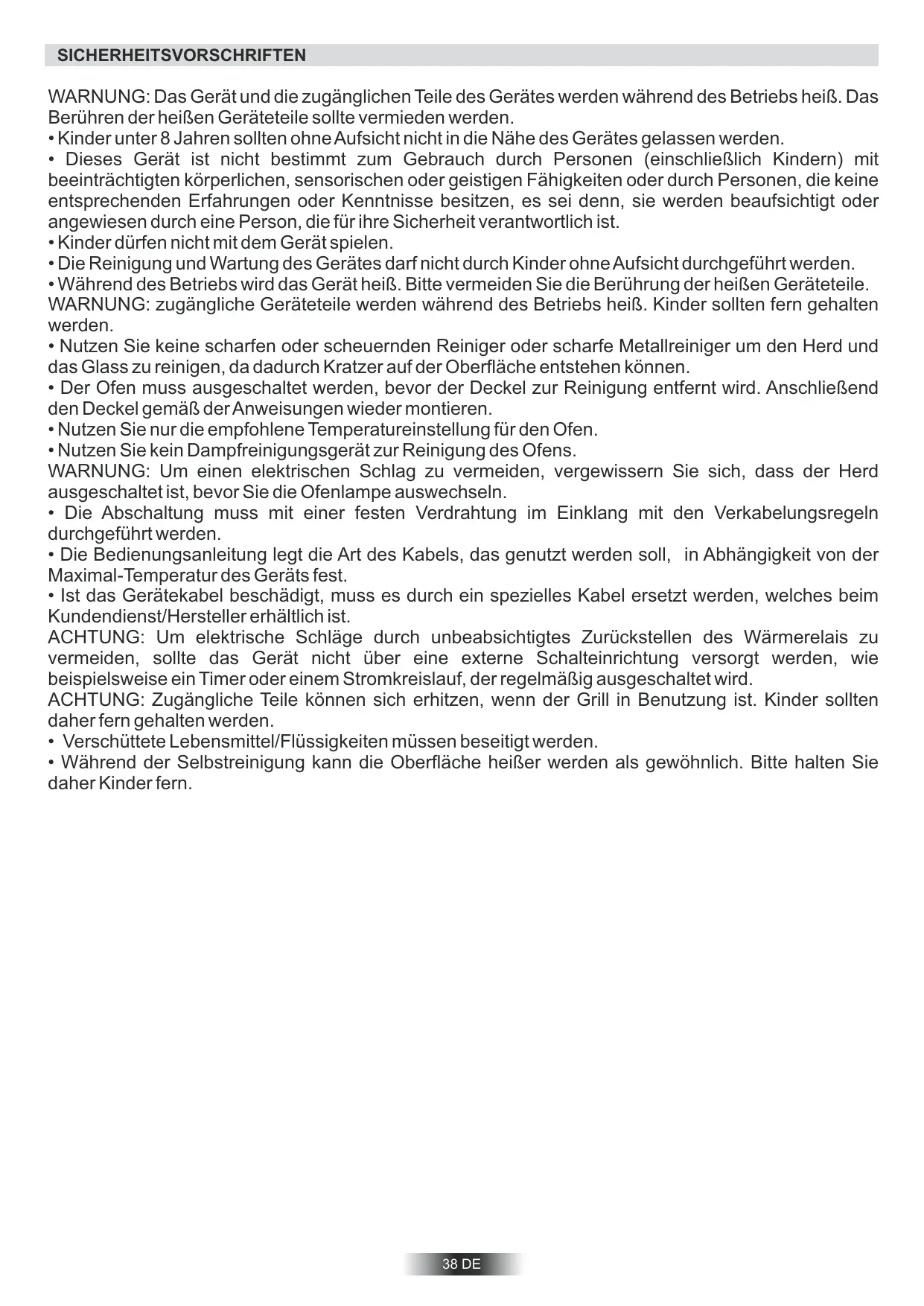 - Während der Selbstreinigung kann die Oberfläche heißer werden als gewöhnlich. Bitte halten Sie daher Kinder fern. 38 DE ALLGEMEINE HINWEISE Herzlichen Glückwunsch! Sie haben ein hochwertiges Qualitätsprodukt erworben. Damit Ihr Gerät stets zu Ihrer Zufriedenheit arbeitet, raten wir Ihnen folgendes: