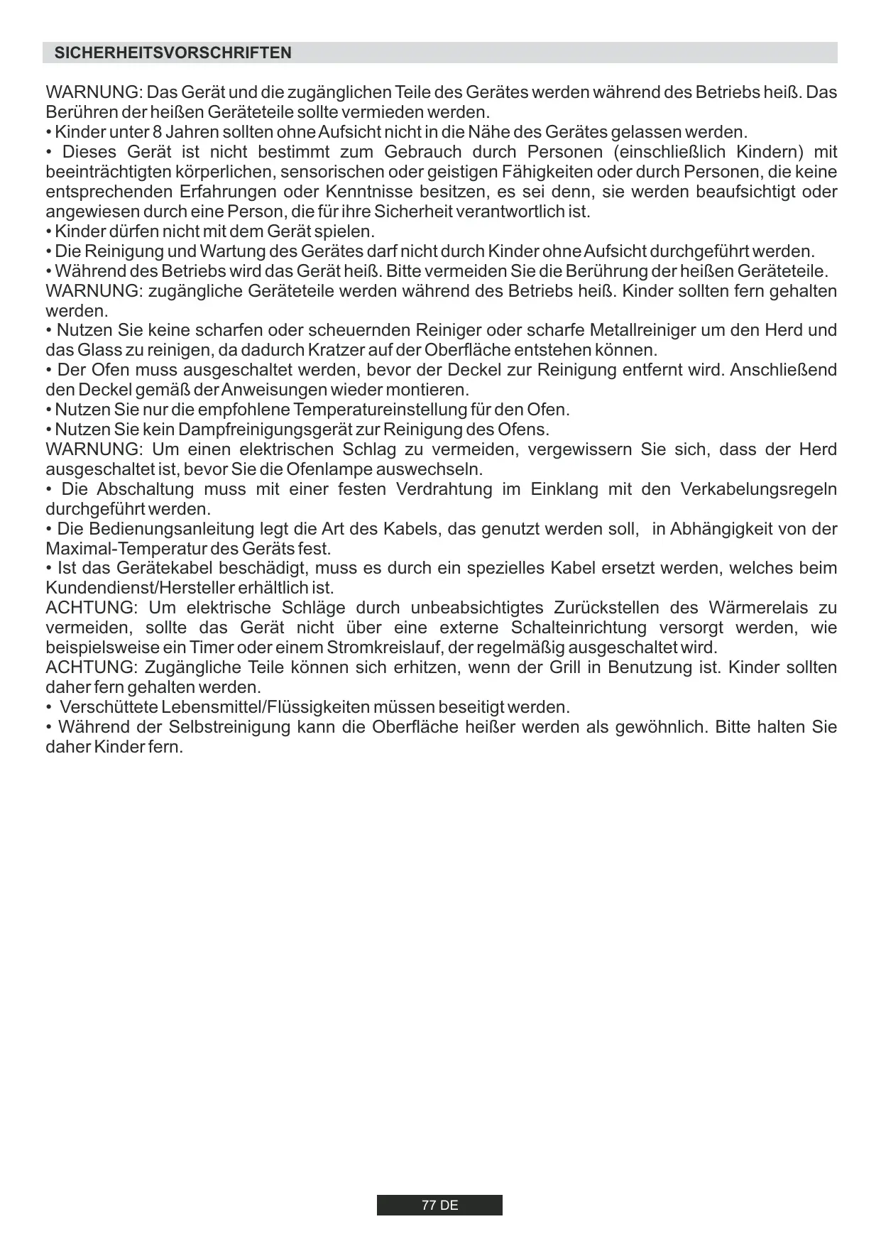 - Während der Selbstreinigung kann die Oberfläche heißer werden als gewöhnlich. Bitte halten Sie daher Kinder fern. 77 DE