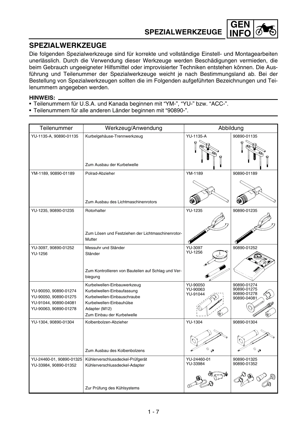 5. • Pour les autres pays, utiliser les numéros de référence commençant par “90890-”. Numéro de référence YU-1135-A, 90890-01135