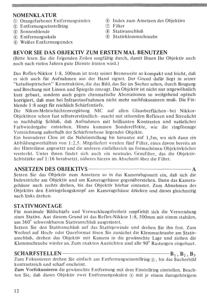 REFLEX - NIKKOR 500MM F/8 - Objektiv NIKON - Kostenlose Bedienungsanleitung