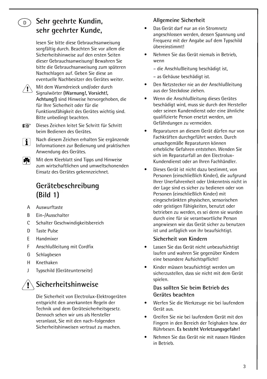 Typsch il d (Ge räte unte rse ite ) Sich e rh e itsh inw e ise D ie Sich e rh e it von El e ctrol ux- El e k troge räte n e ntsprich t de n ane rk annte n Re ge l n de r Te ch nik und de m Ge räte sich e rh e itsge se tz. D e nnoch se h e n w ir uns al s H e rste l
