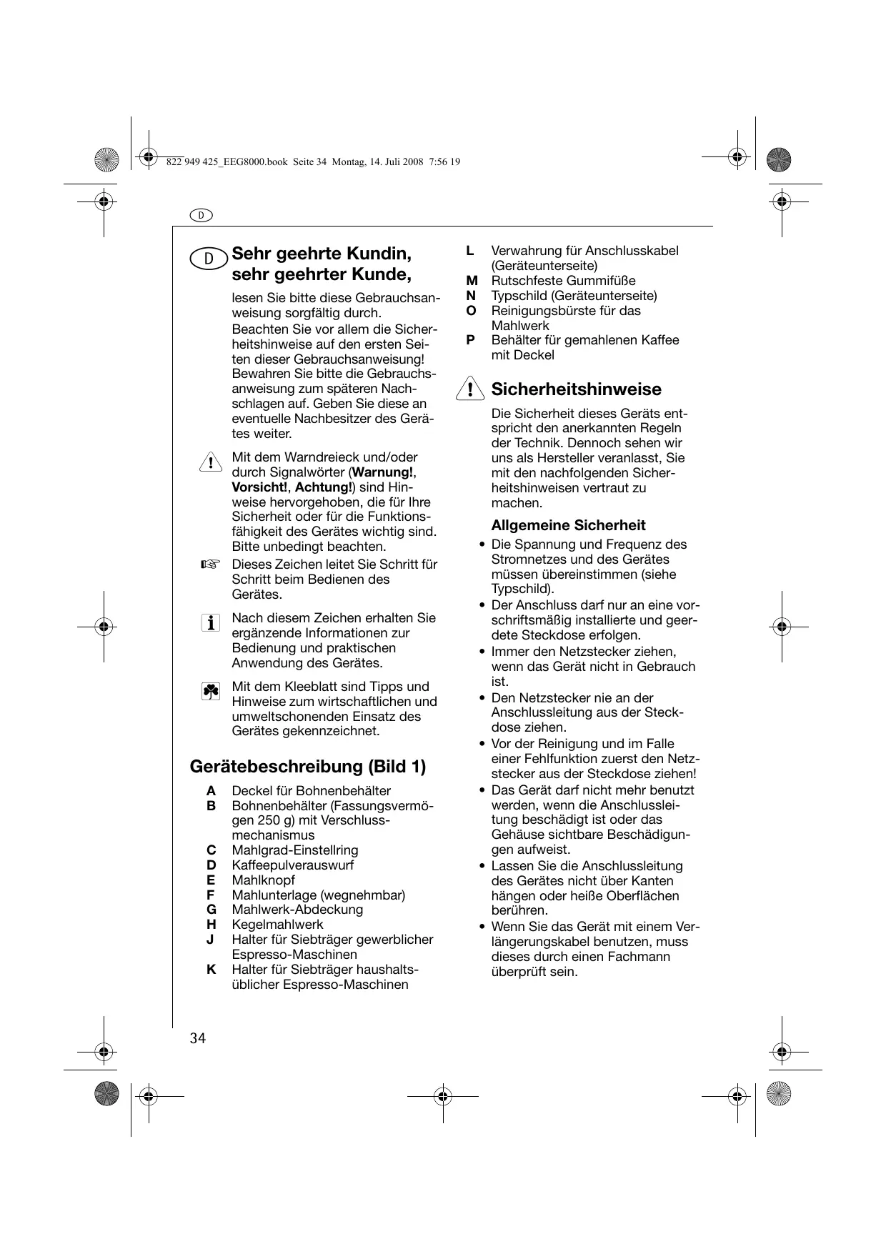 EEG8000 - Elektrische Kaffeemühle AEG-ELECTROLUX - Kostenlose Bedienungsanleitung