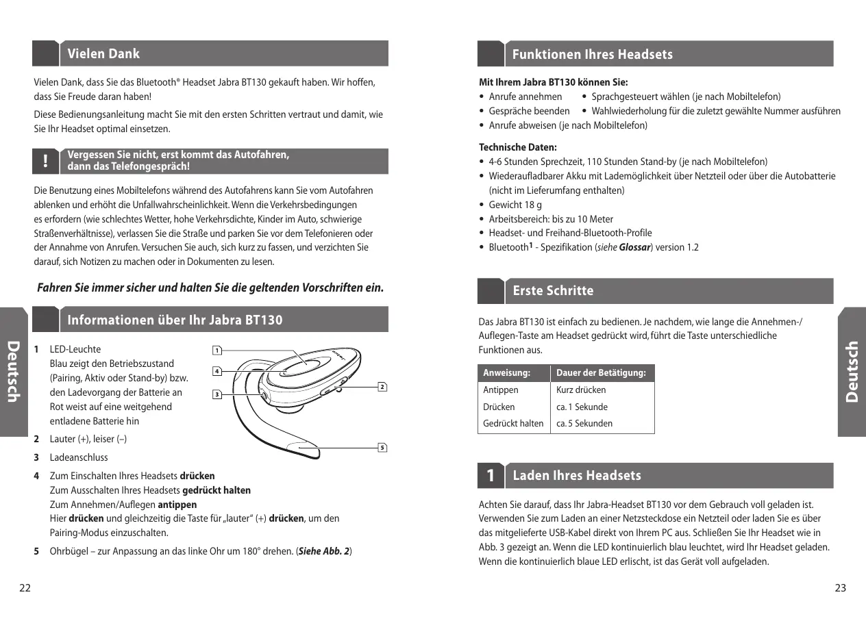 Vielen Dank, dass Sie das Bluetooth® Headset Jabra BT130 gekauft haben. Wir hoffen, dass Sie Freude daran haben!