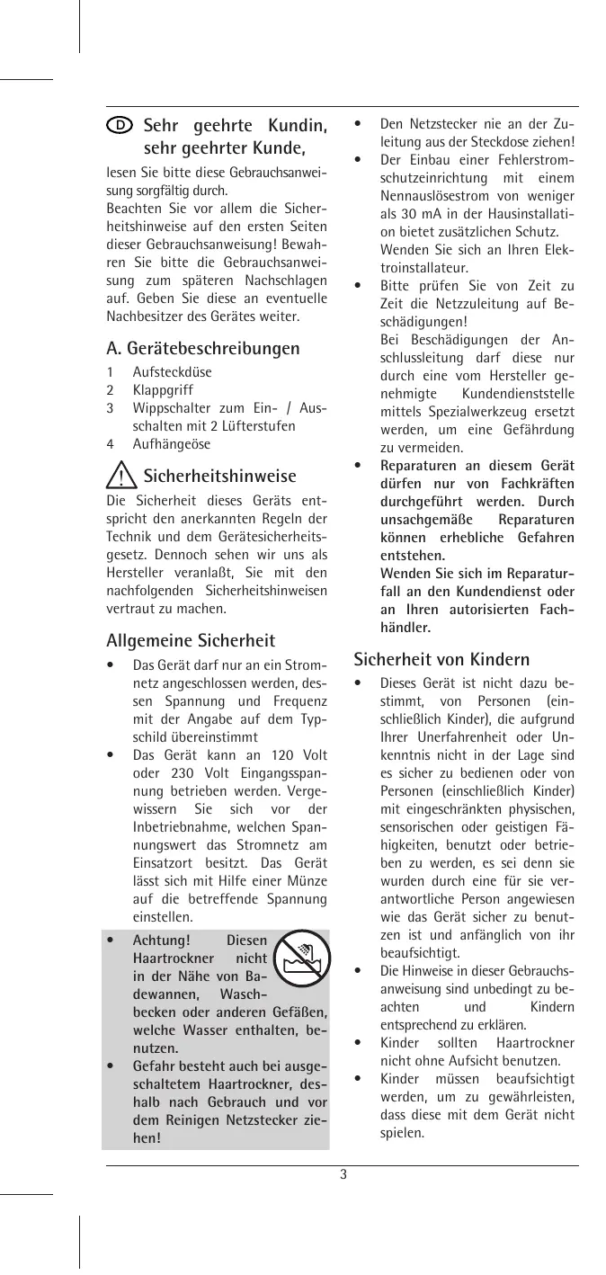 - K inde r sol te n H aartrock ne r nich t oh ne Aufsich t be nutze n.