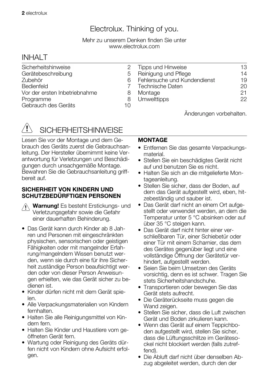 Finden Sie kostenlos die Bedienungsanleitung des Geräts TWGL5E201 AEG-ELECTROLUX als PDF.