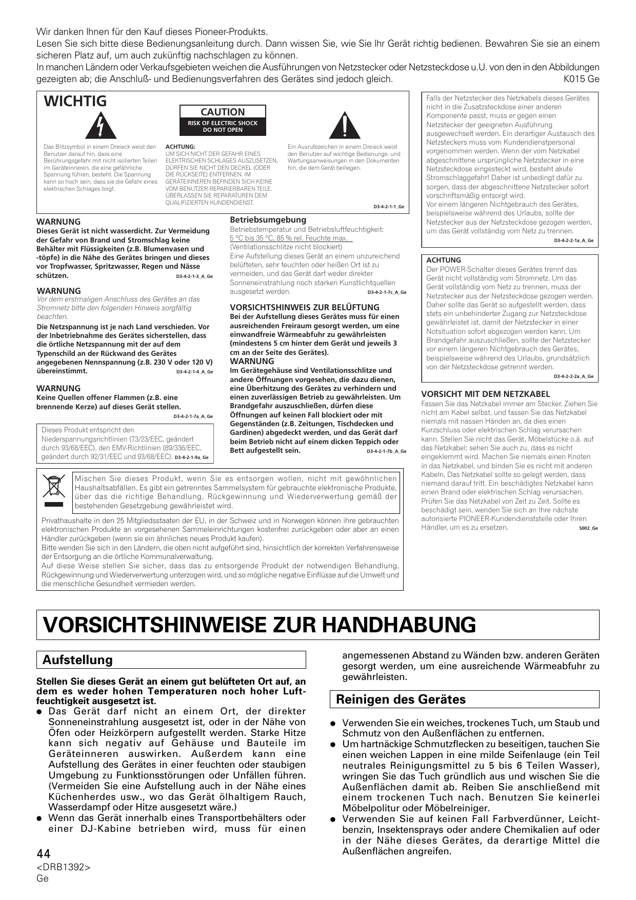 Wir danken Ihnen für den Kauf theses Pioneer-Produkts.
