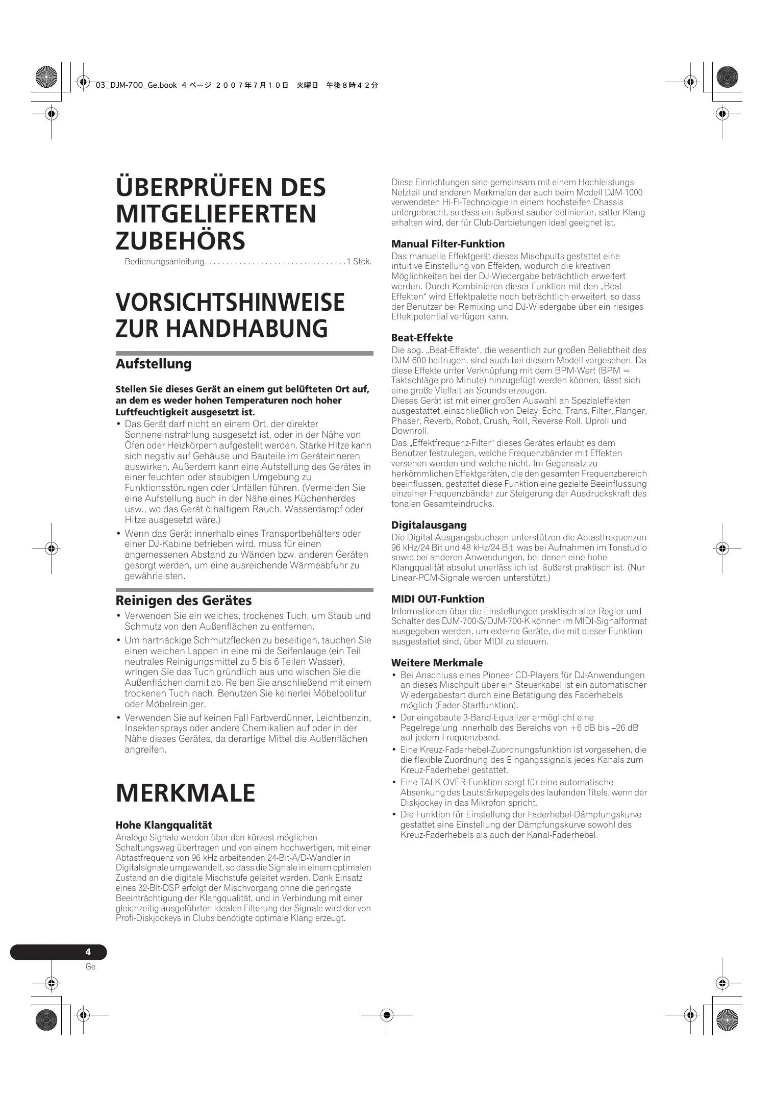 Plattenspieler CD-Player für DJ-Anwendungen CD-Player für DJ-Anwendungen Cassettendeck usw. 03_DJM-700_Ge.book 7 ページ 2007年7月10日