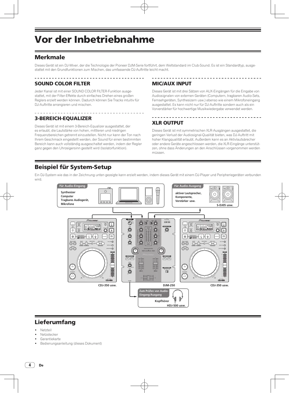 Vor der Inbetriebnahme Merkmale Dieses Gerät ist ein DJ-Mixer, der die Technologie der Pioneer DJM-Serie fortführt, dem Weltstandard im Club-Sound. Es ist ein Standardtyp, ausgestattet mit den Grundfunktionen zum Mischen, das umfassende DJ-Auftritte leicht macht.