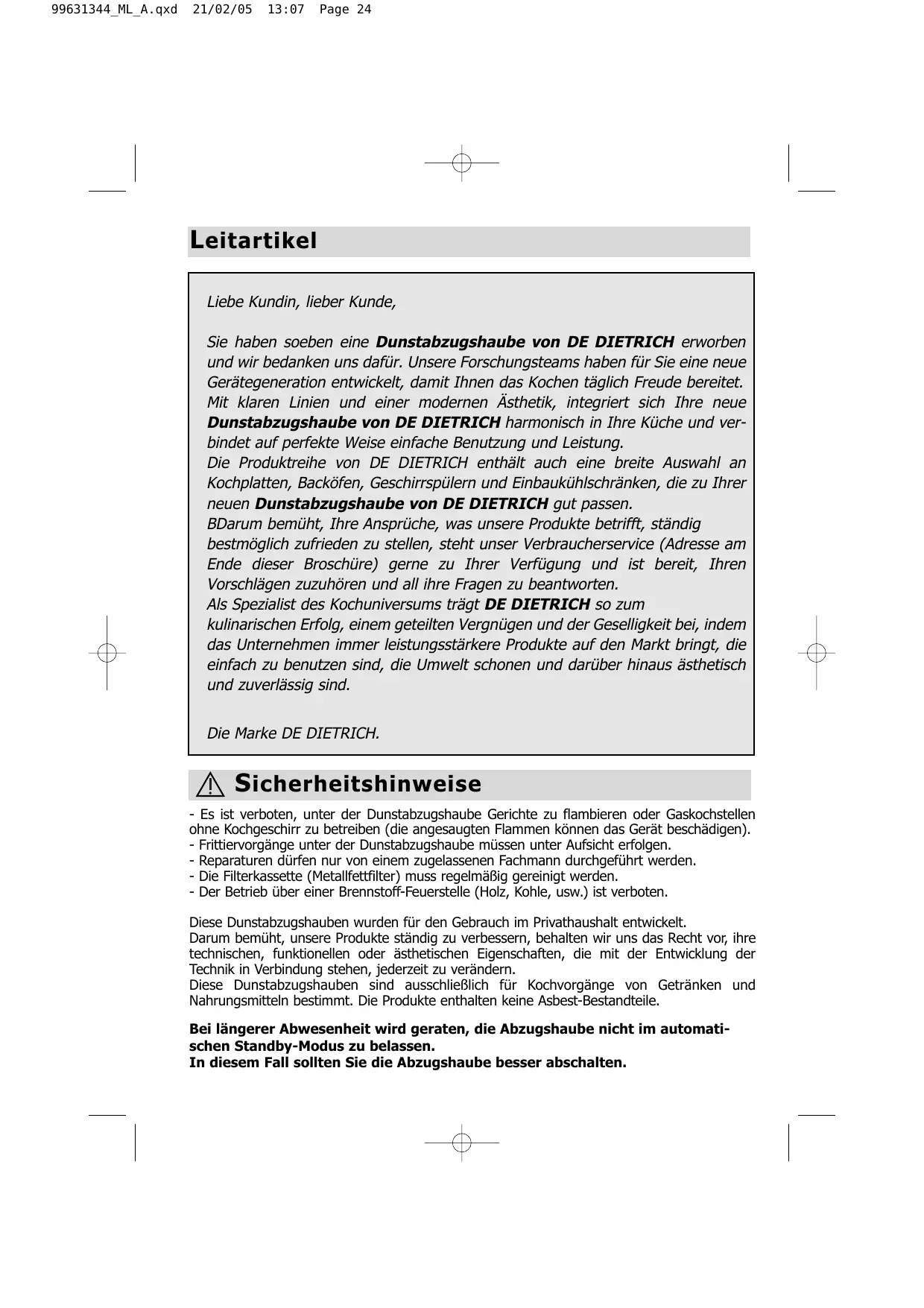 Laden Sie die Anleitung für Ihr Dunstabzugshaube kostenlos im PDF-Format! Finden Sie Ihr Handbuch DHD599XE1 - DE DIETRICH und nehmen Sie Ihr elektronisches Gerät wieder in die Hand. Auf dieser Seite sind alle Dokumente veröffentlicht, die für die Verwendung Ihres Geräts notwendig sind. DHD599XE1 von der Marke DE DIETRICH.