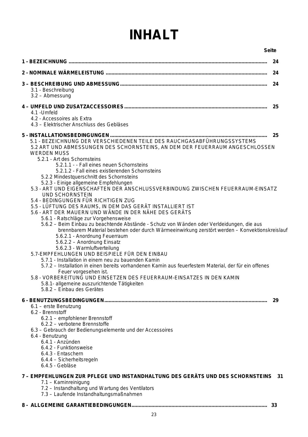 8 - ALLGEMEINE GARANTIEBEDINGUNGEN............................................................................................... 33