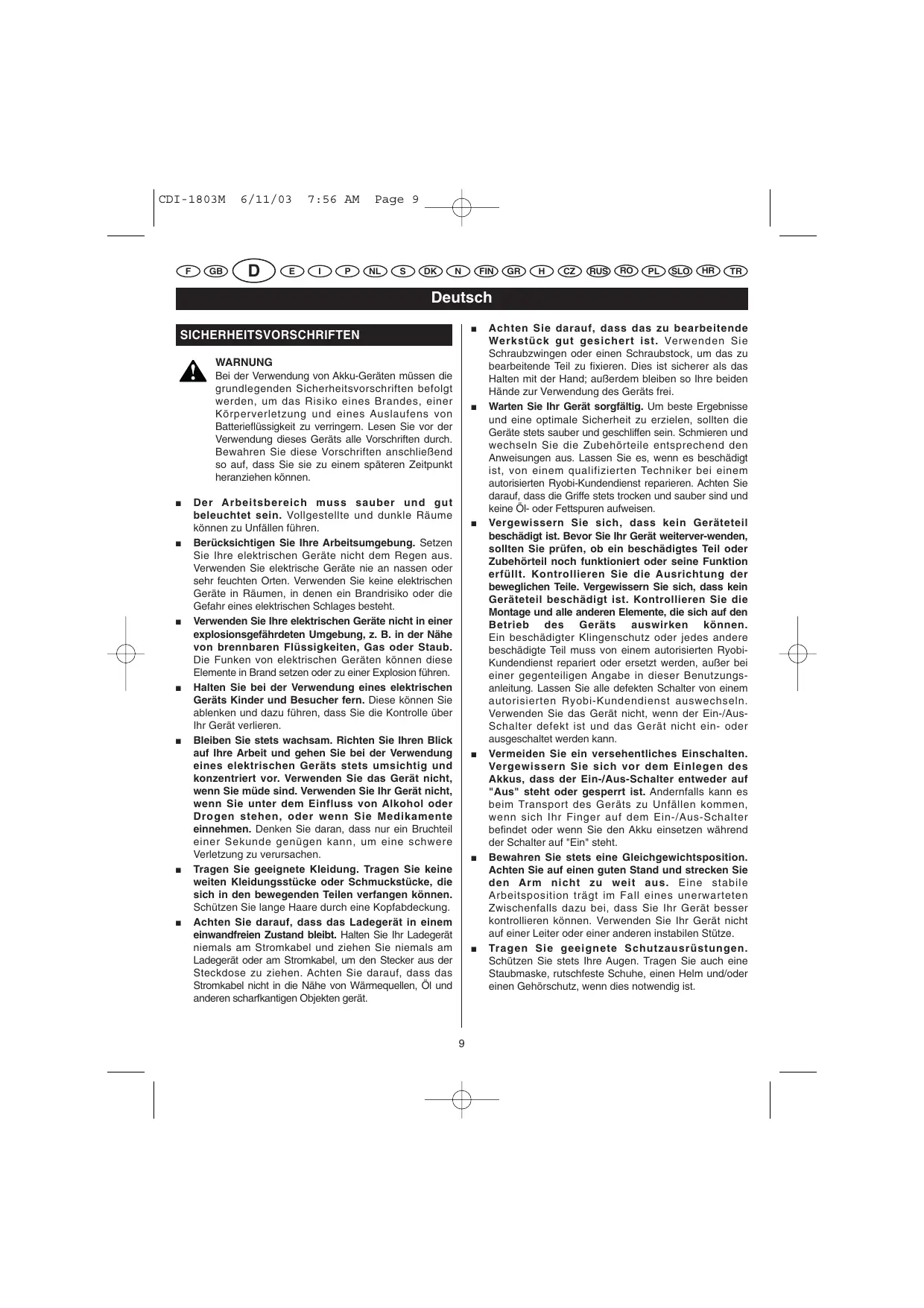 BEDIENUNGSANLEITUNG CDI1803M RYOBI
