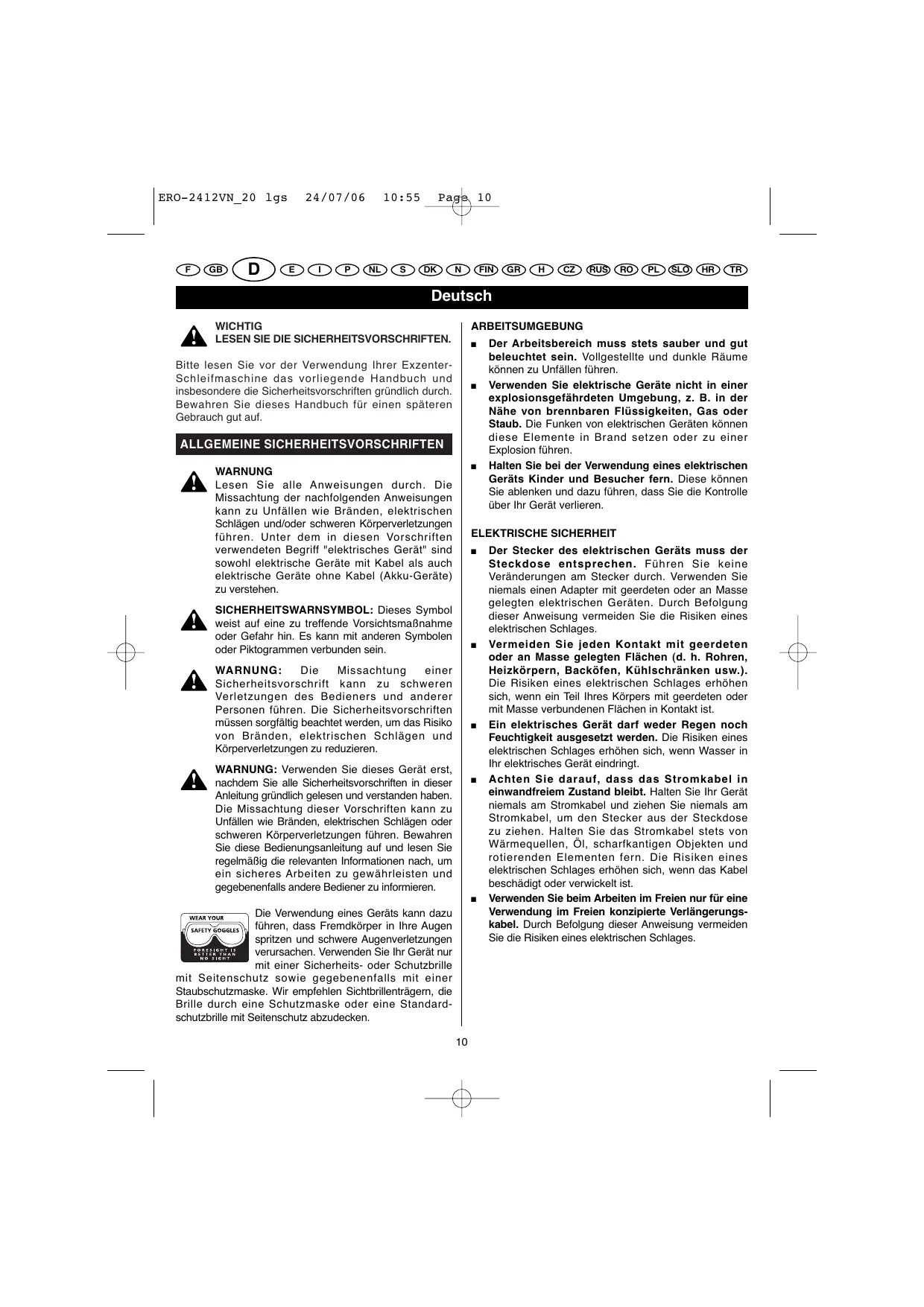 Deutsch ALLGEMEINE SICHERHEITSVORSCHRIFTEN