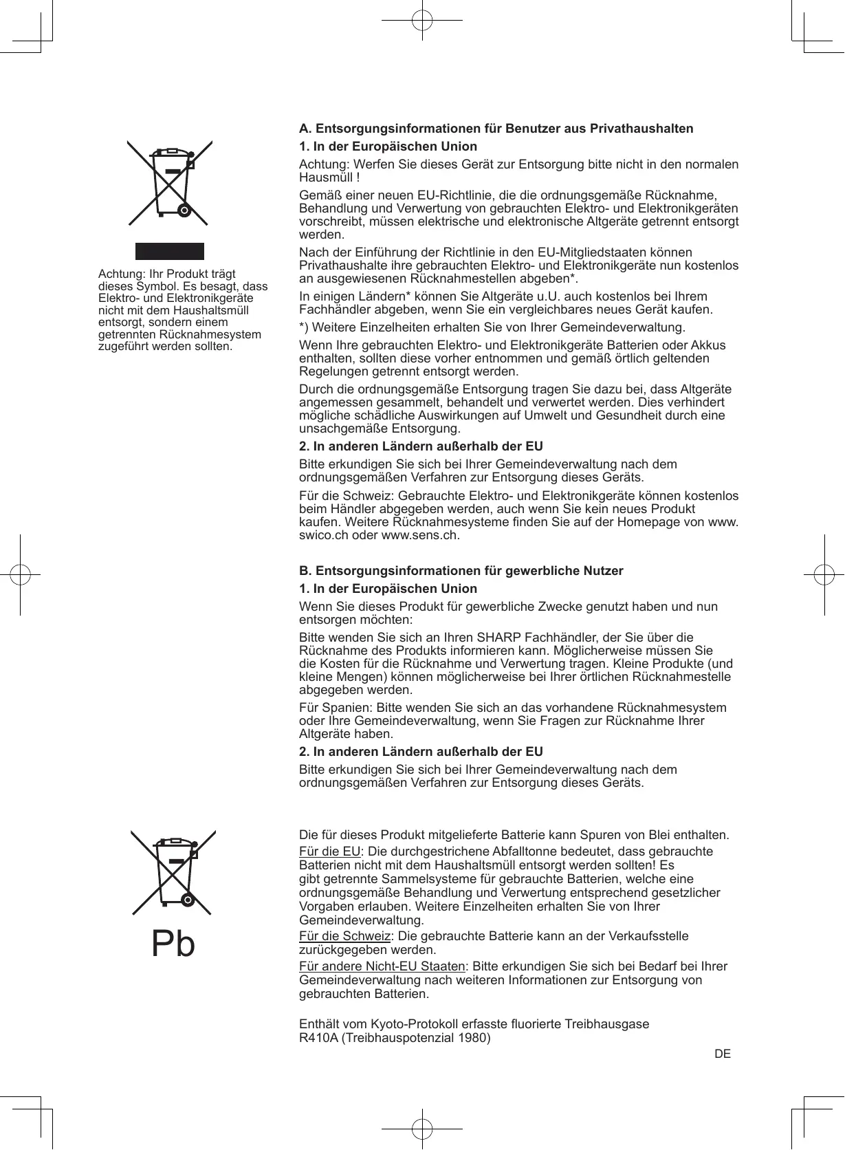 A. Entsorgungsinformationen für Benutzer aus Privathaushalten 1. In der Europäischen Union