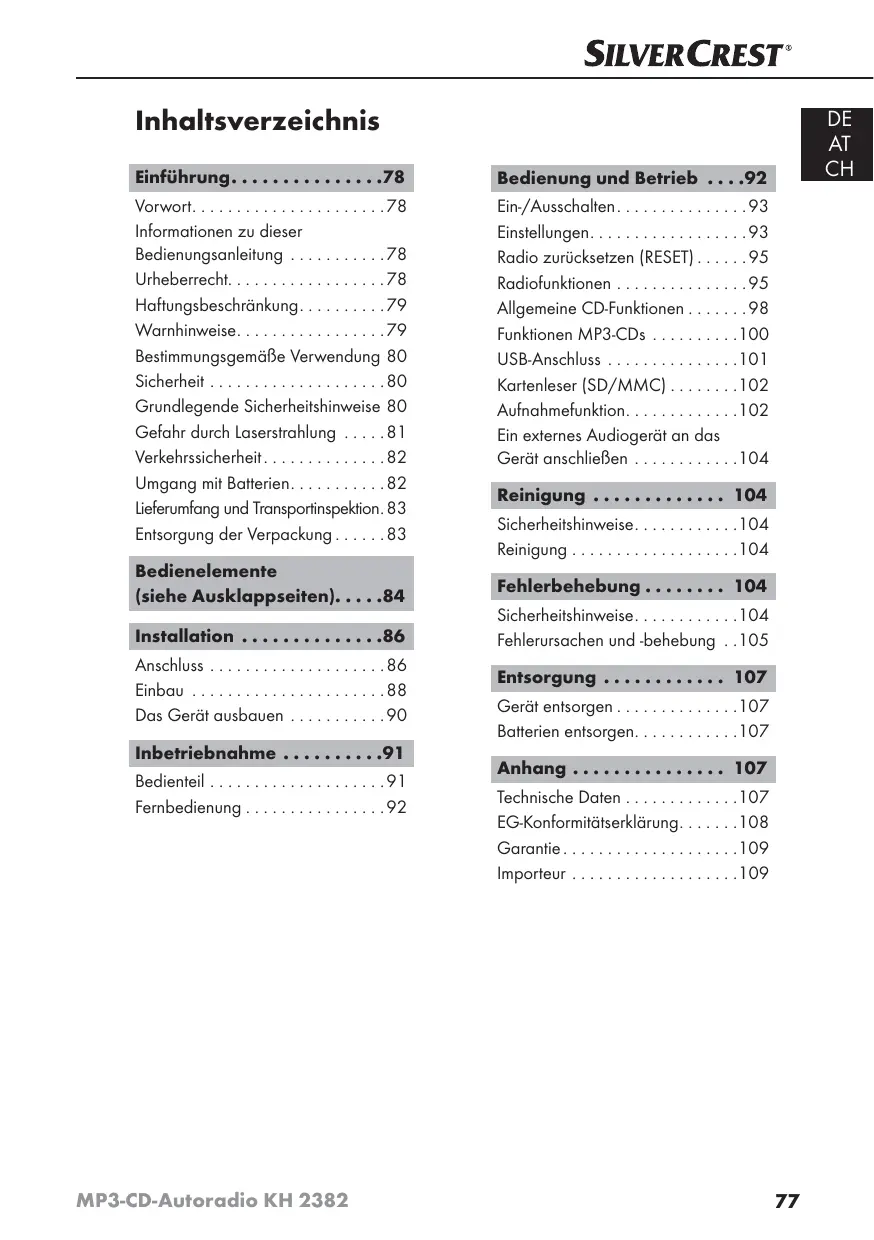 - MP3-CD-Autoradio KH 2382 Reinigung p. 104