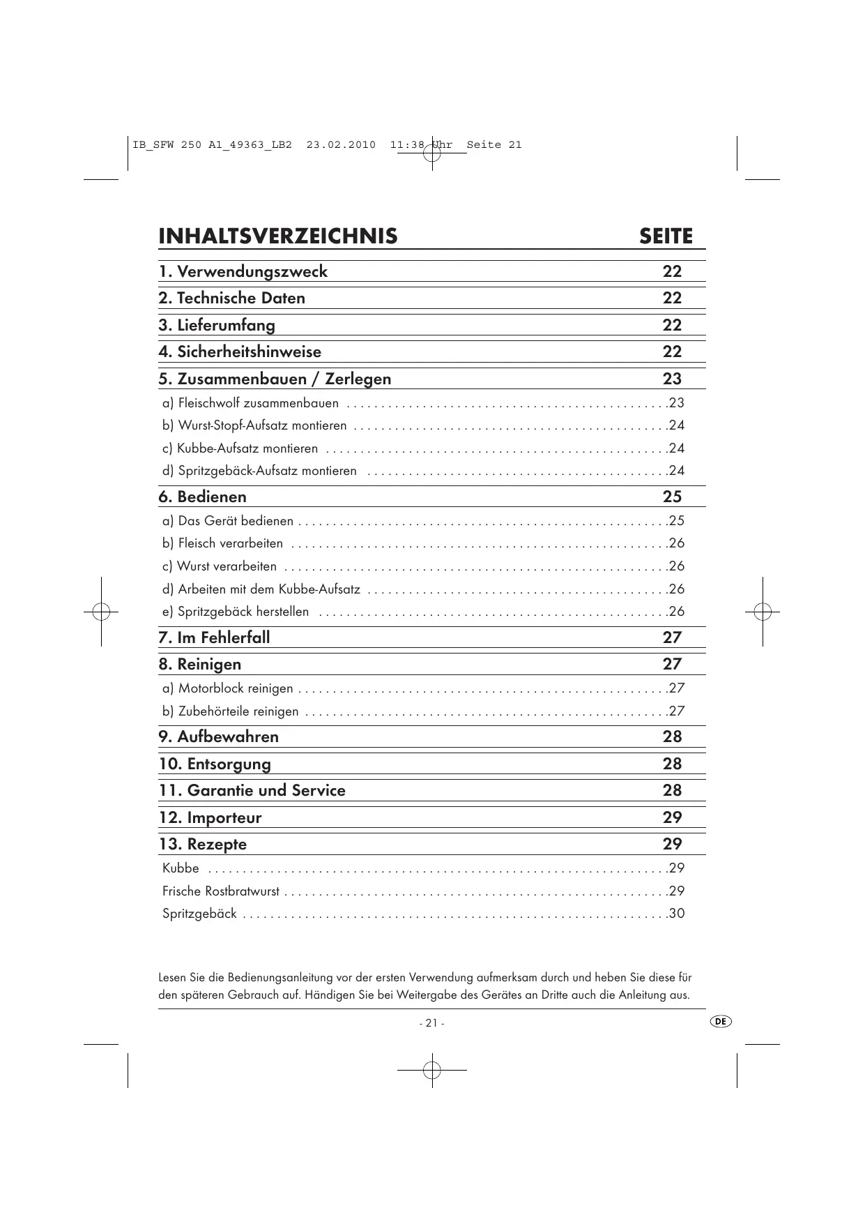 - a) Fleischwolf zusammenbauen p. 23