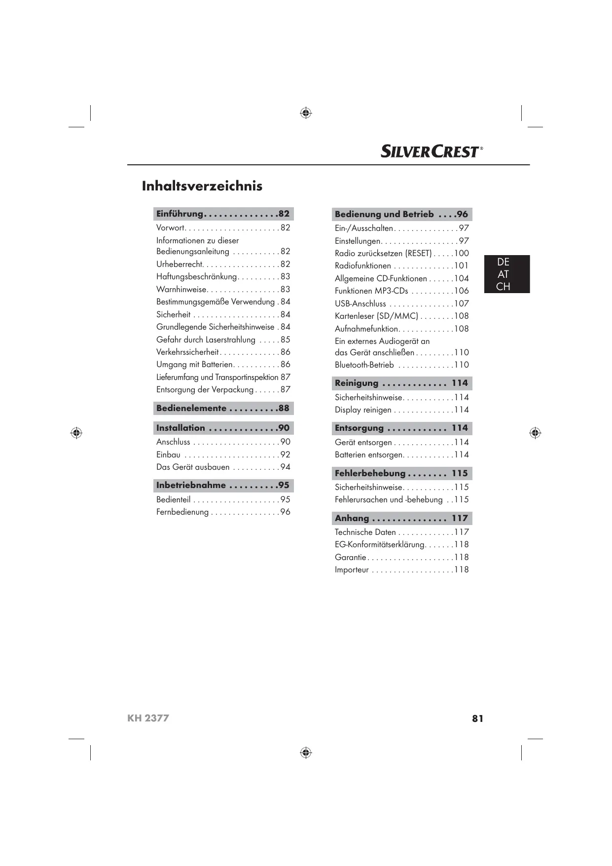 Laden Sie die Anleitung für Ihr Autoradio kostenlos im PDF-Format! Finden Sie Ihr Handbuch KH 2377 - SILVERCREST und nehmen Sie Ihr elektronisches Gerät wieder in die Hand. Auf dieser Seite sind alle Dokumente veröffentlicht, die für die Verwendung Ihres Geräts notwendig sind. KH 2377 von der Marke SILVERCREST.